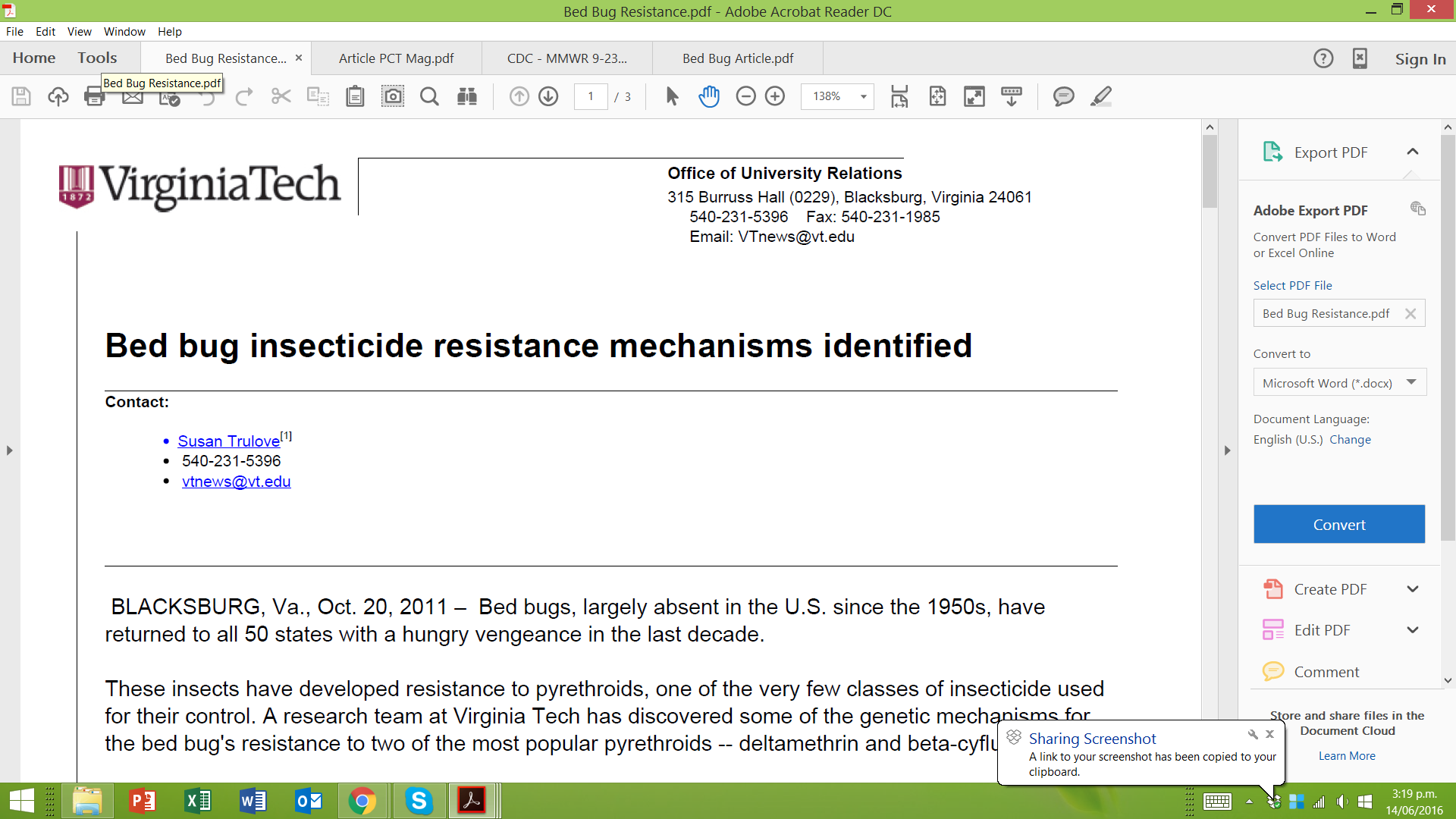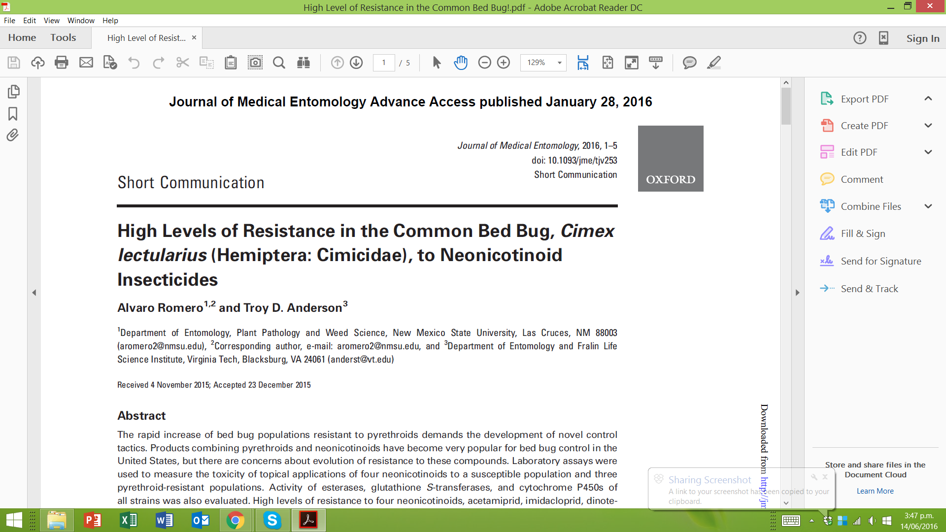 Bed Bugs are very difficult to eliminate, read more in the links from entomologists around the world!